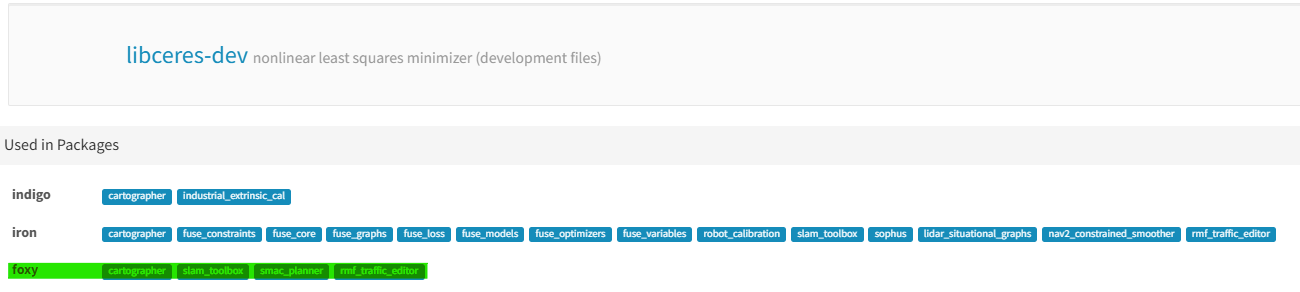 libceres-dev는 nonlinear least squares minimizer(ceres solver)이고 libceres-dev를 의존하는 패키지에 cartographer, slam_toolbox, smac_planner가 모두 들어가 있었다.